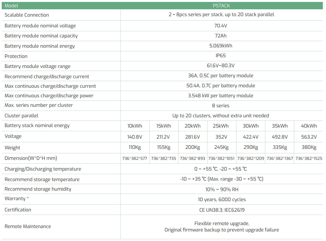 Datasheet Hệ thống pin lưu trữ áp cao Luxpower 70.4V 10~40kWh PSTACK: