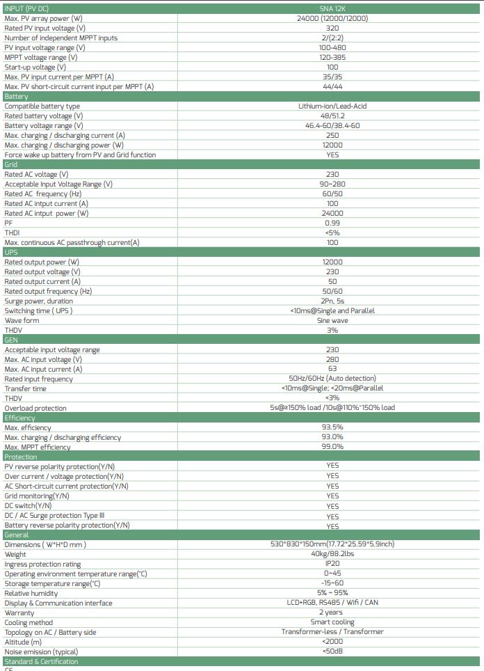Datasheet Inverter Off-grid Luxpower 12kW SNA 12K: